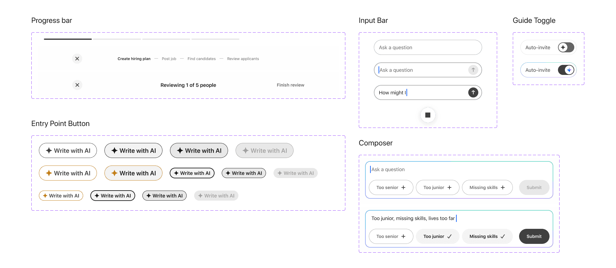 As the lead designer, I drove alignment across a highly cross-functional team and helped scale the vision across multiple platforms. My early design concepts and systems work influenced not only Hiring Assistant, but also other AI products at LinkedIn.