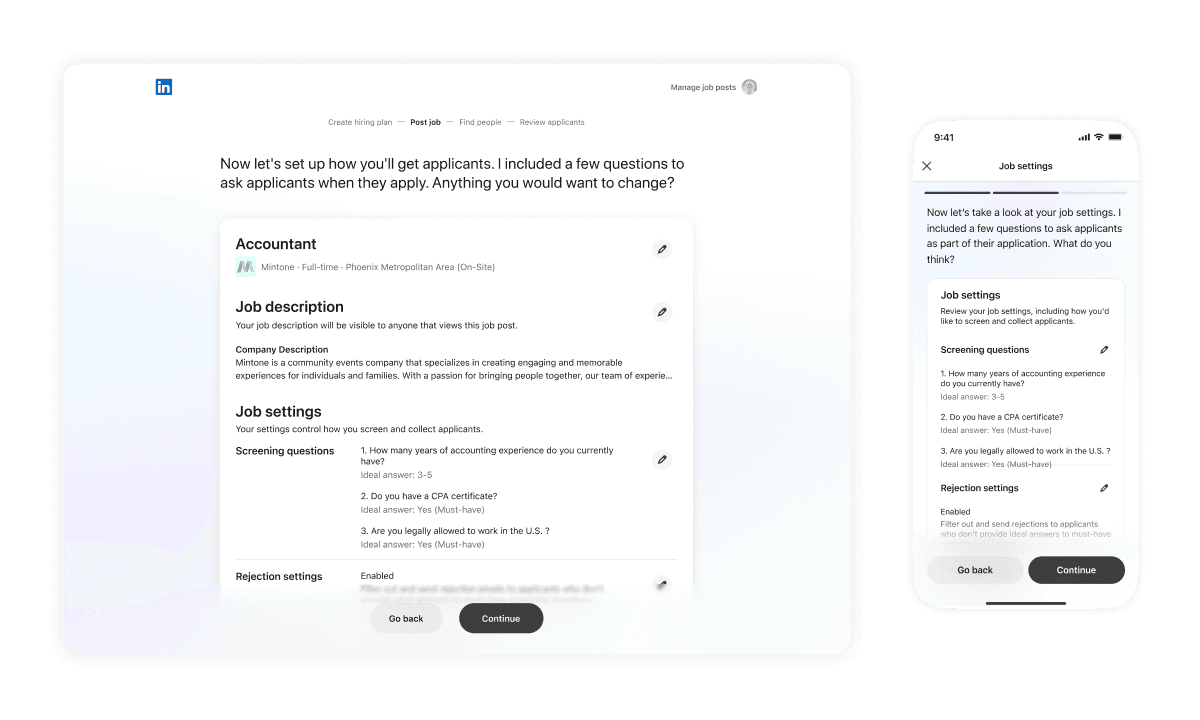 The experience was rolled out in two phases: first, a lightweight 1-step posting and sourcing flow; then a more refined, customizable workflow based on beta feedback.